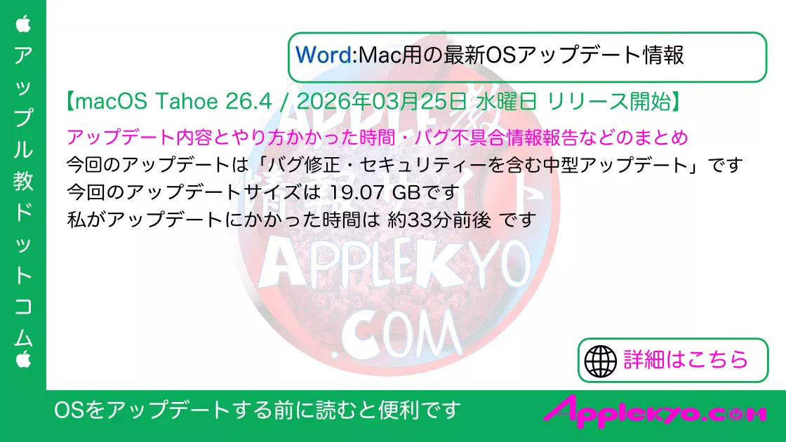 macOS Tahoe 26.3.1 配信開始日は2026年03月05日 木曜日 (日本時間) 記事のアップデート情報 2026年03月05日 木曜日 (日本時間) 記事公開 OSリリース情報 今回 2026年03...Apple 総合 -