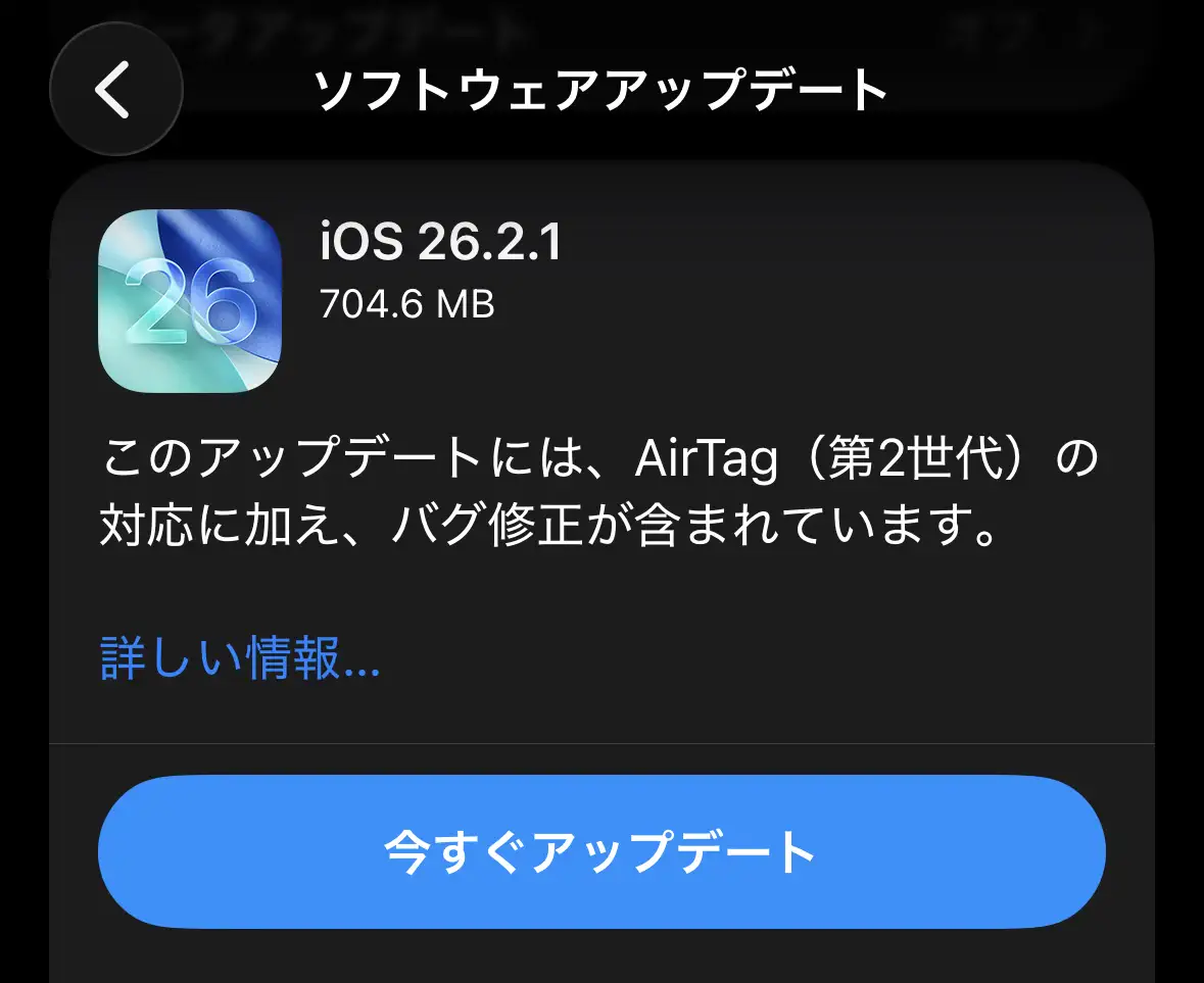| 今回のOSと容量 | iOS 26.2.1【 704.6 MB 】 |