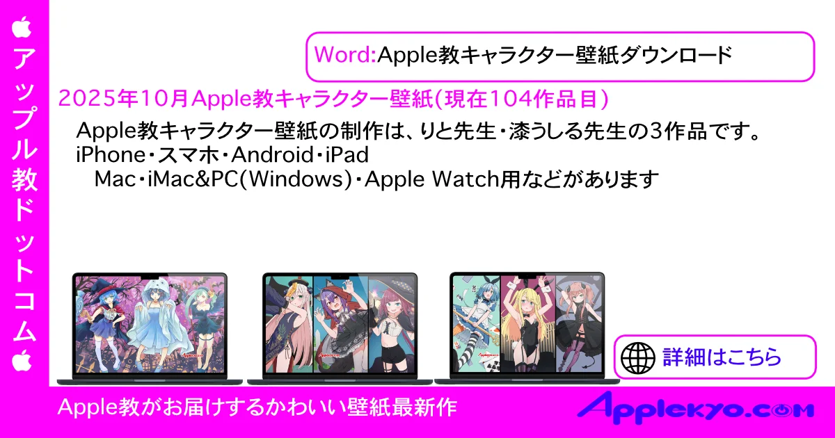 当サイトでは、AmazonアフィリエイトやGoogle Adsense広告により広告収益を得て運営しています。 広告の観覧やAmazonなどの広告先購入により売り上げの一部がAppleKyo.Comに還元されることがあります。