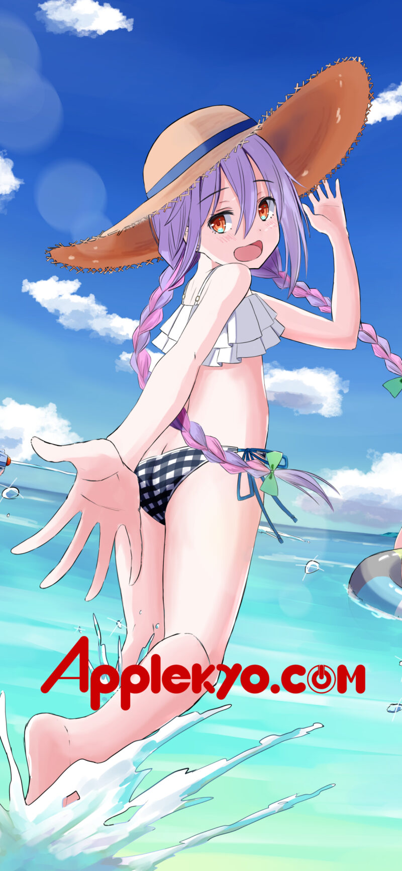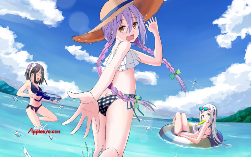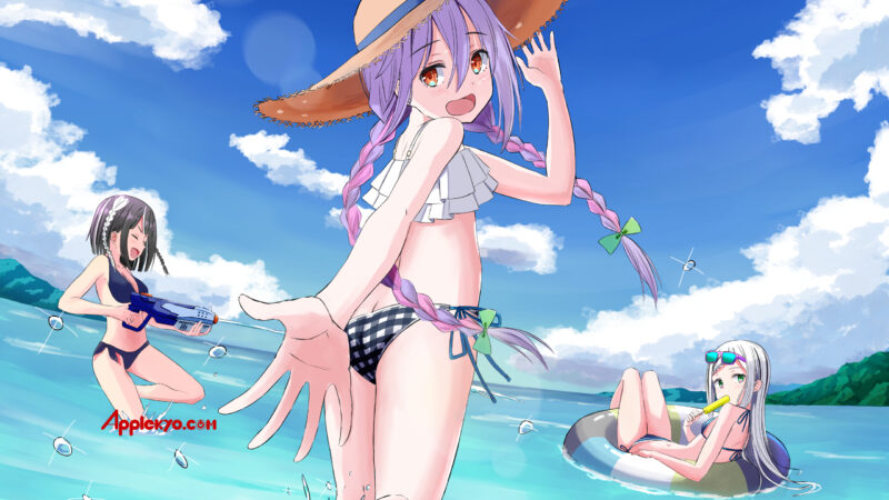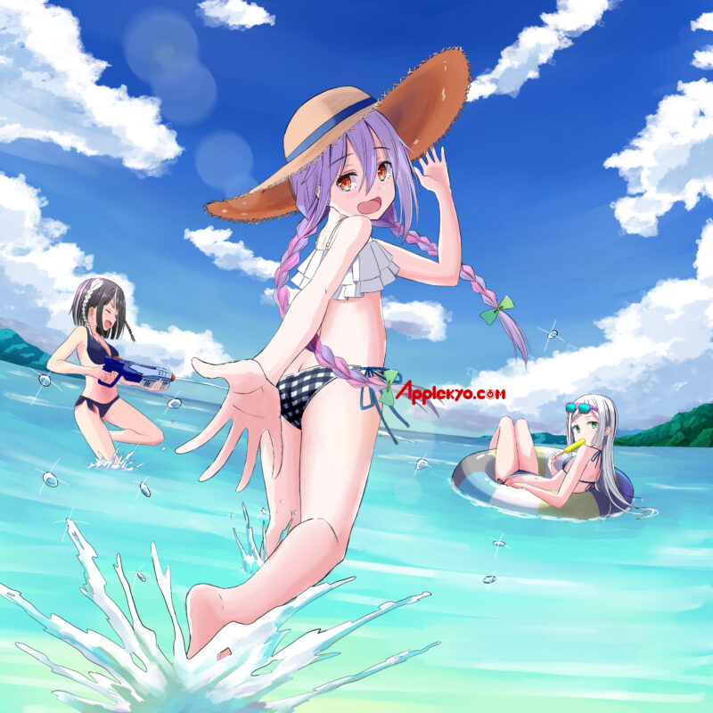 6月のうしるさんの壁紙では奏ちゃんだけでしたが、うしるさんとしての公式としては響ちゃんが初登場です。黒髪の子が響ちゃんで銀髪の子が奏ちゃんです。3人とも楽しそうに水遊びをしています。