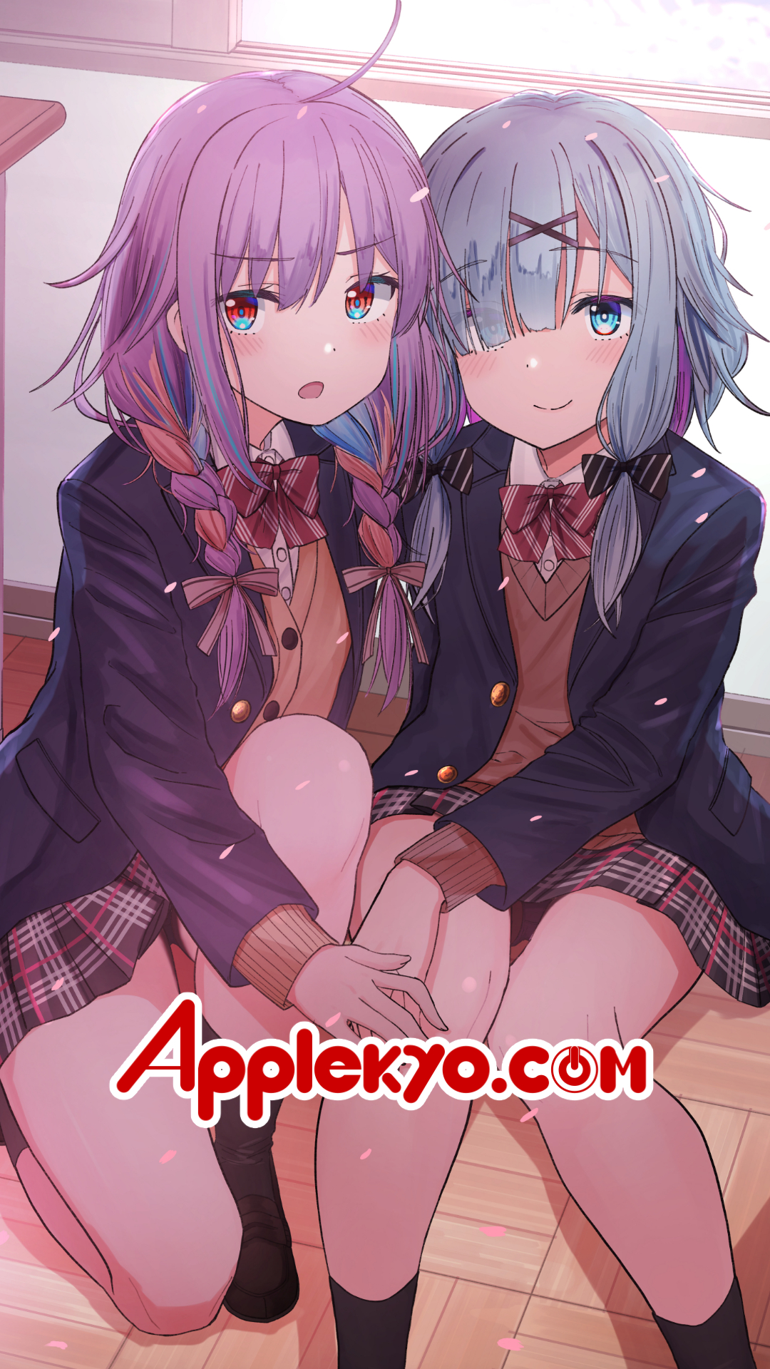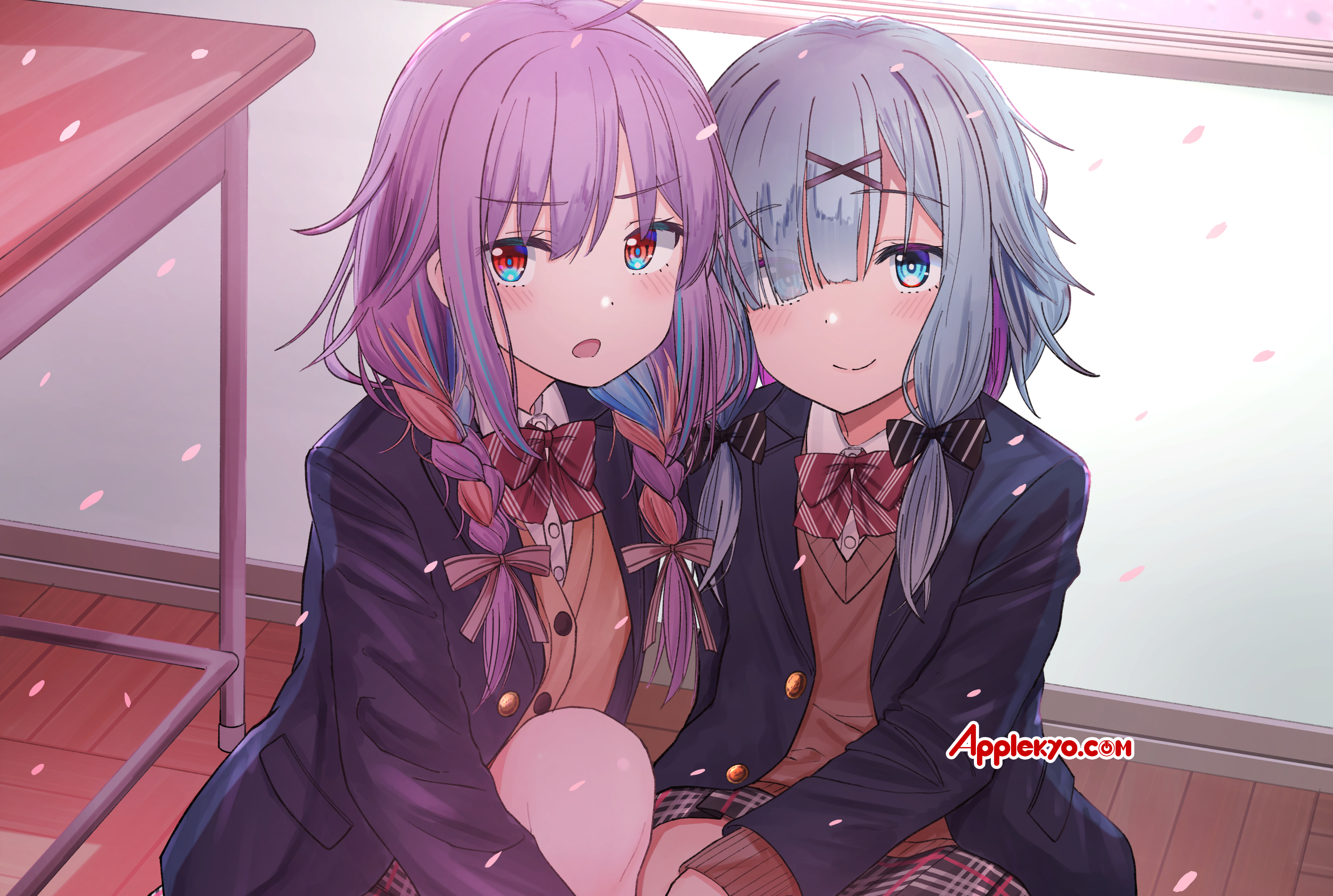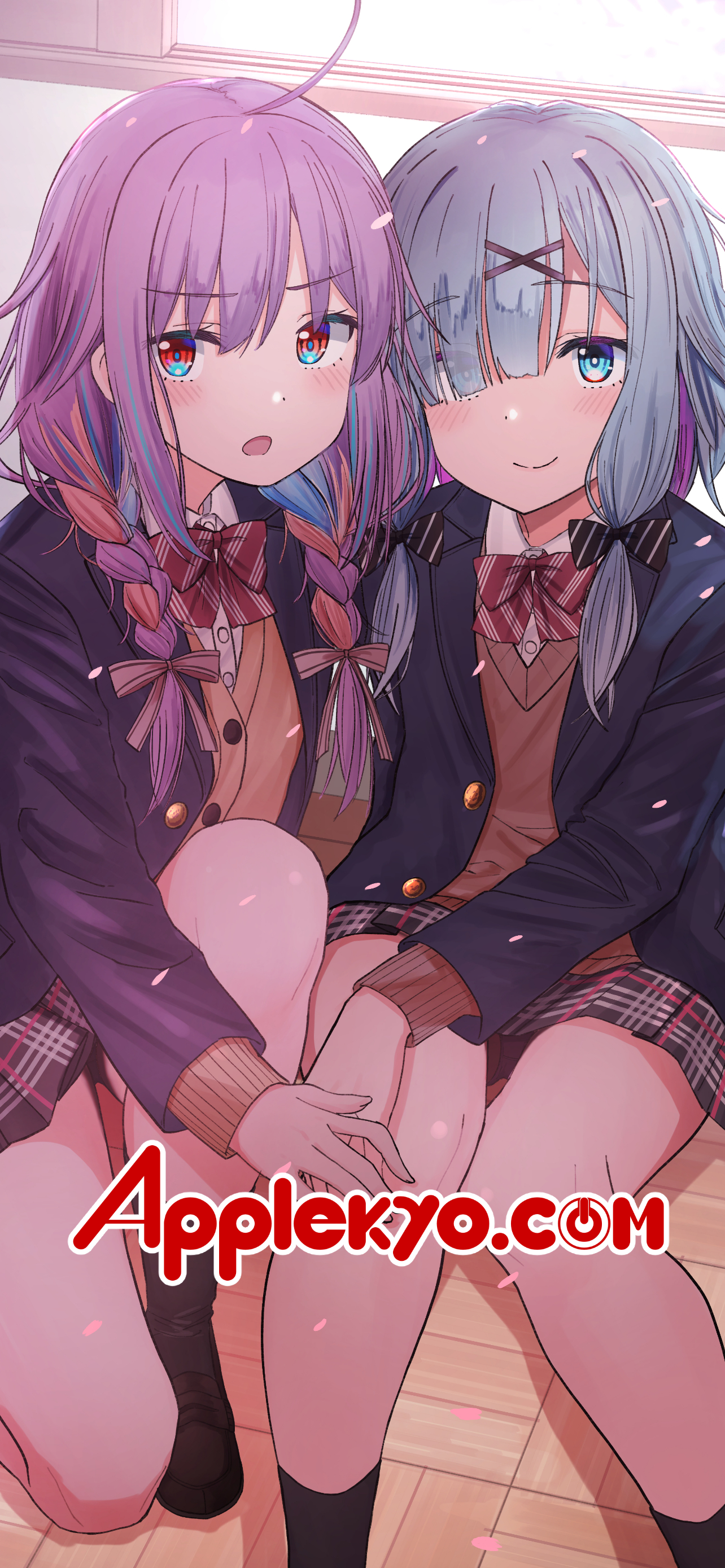 漆うしる先生今月の壁紙は制服姿の彩葉七色たんと幕乃涼(すず)たんだぞ‼️