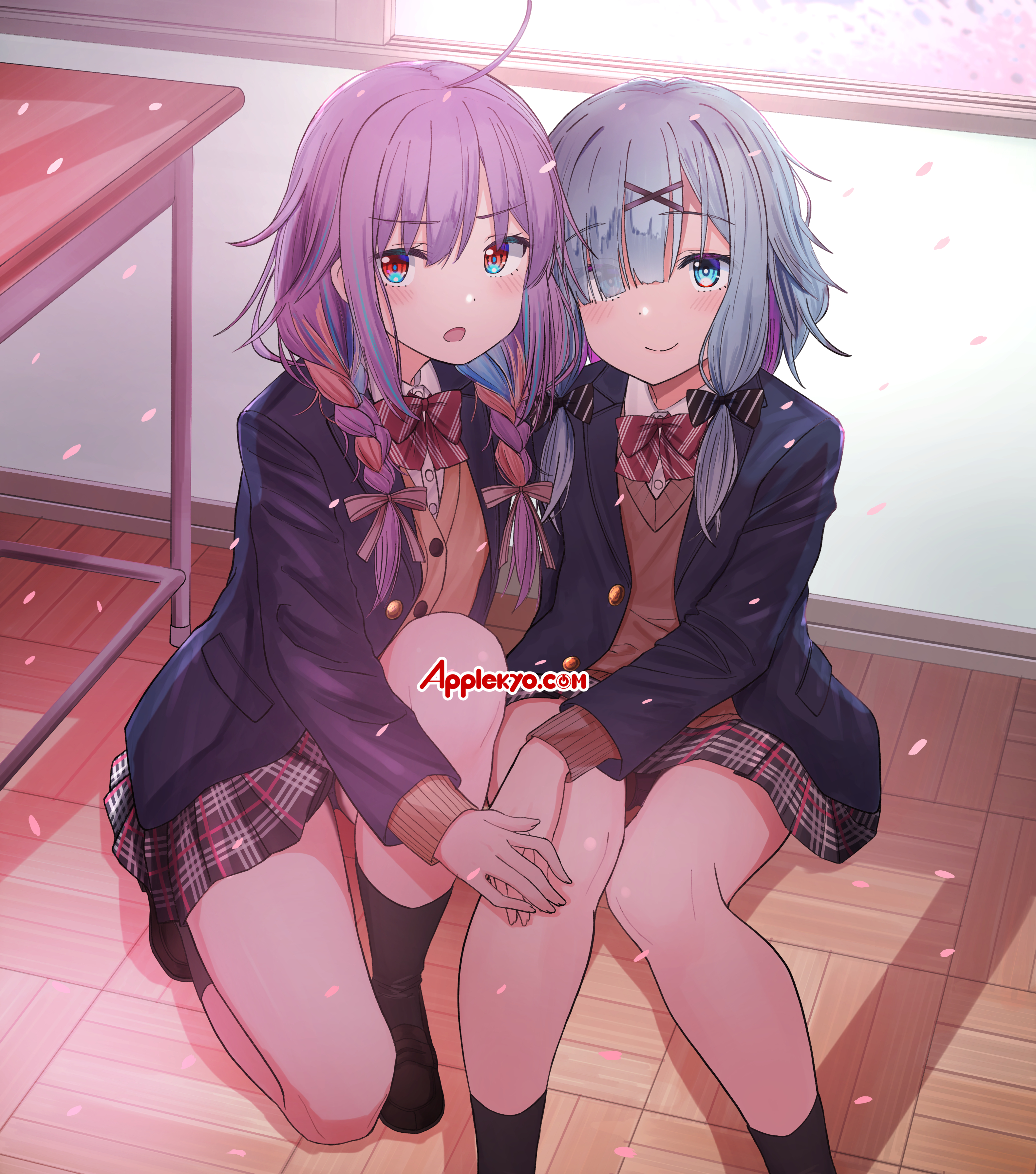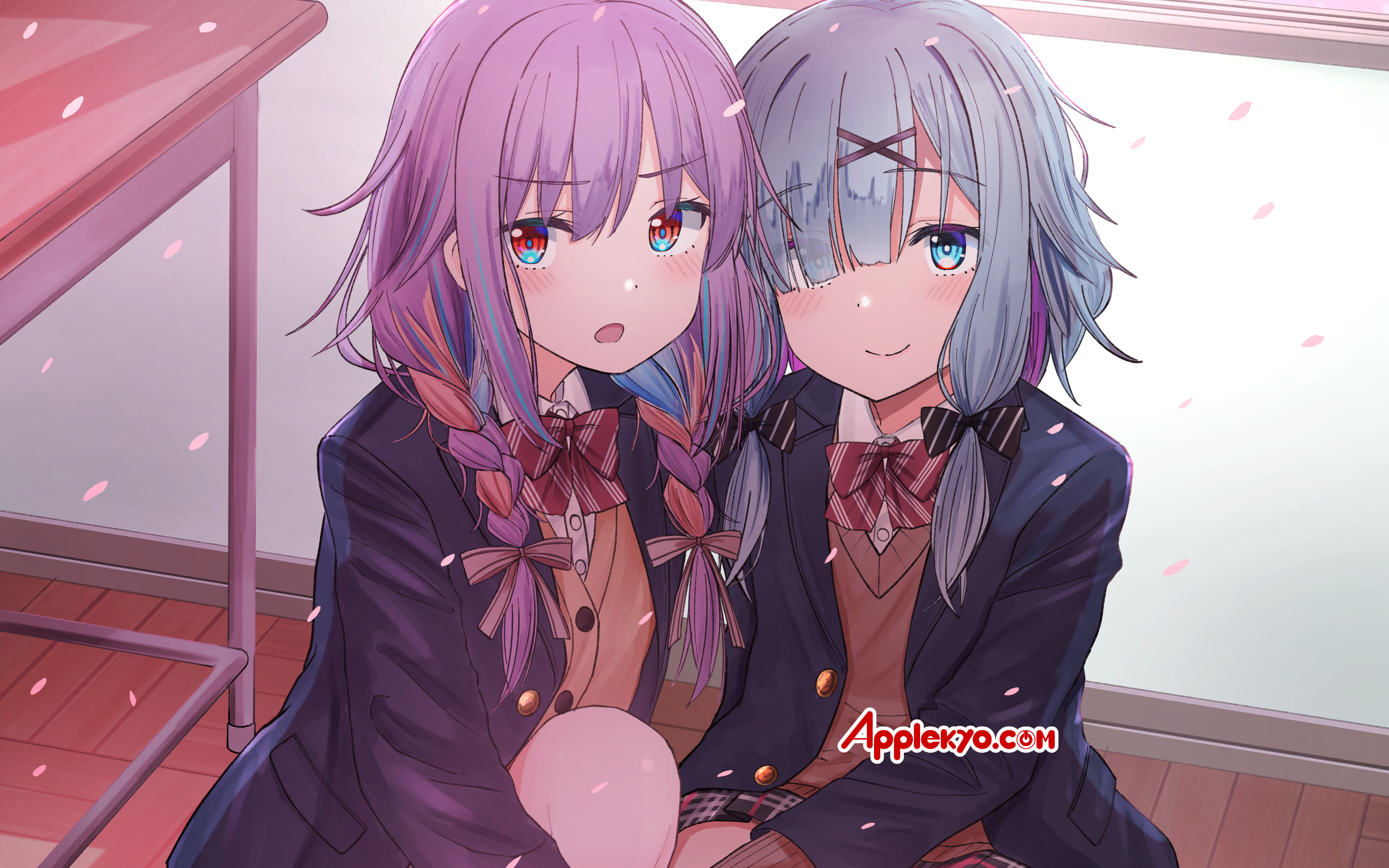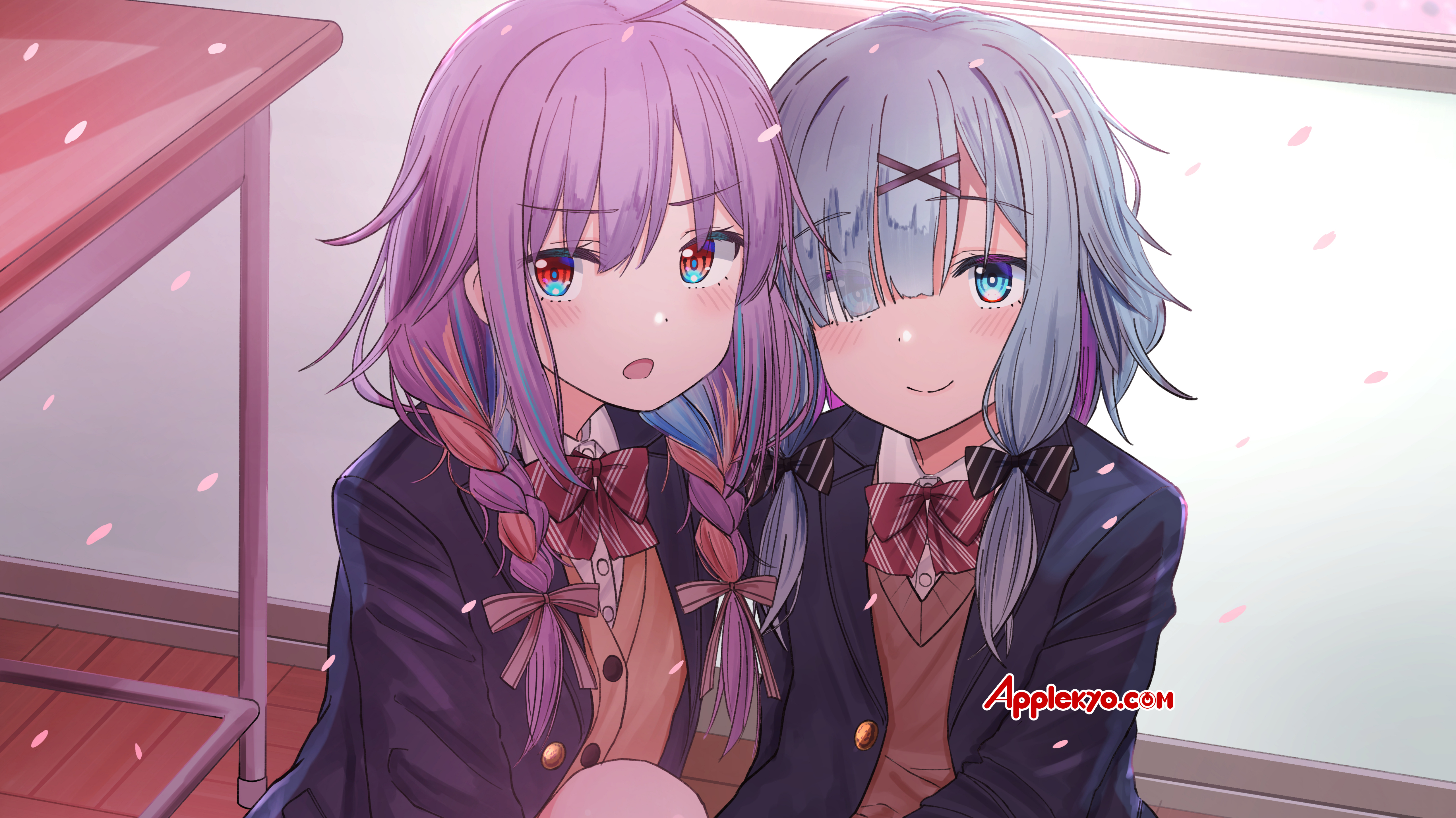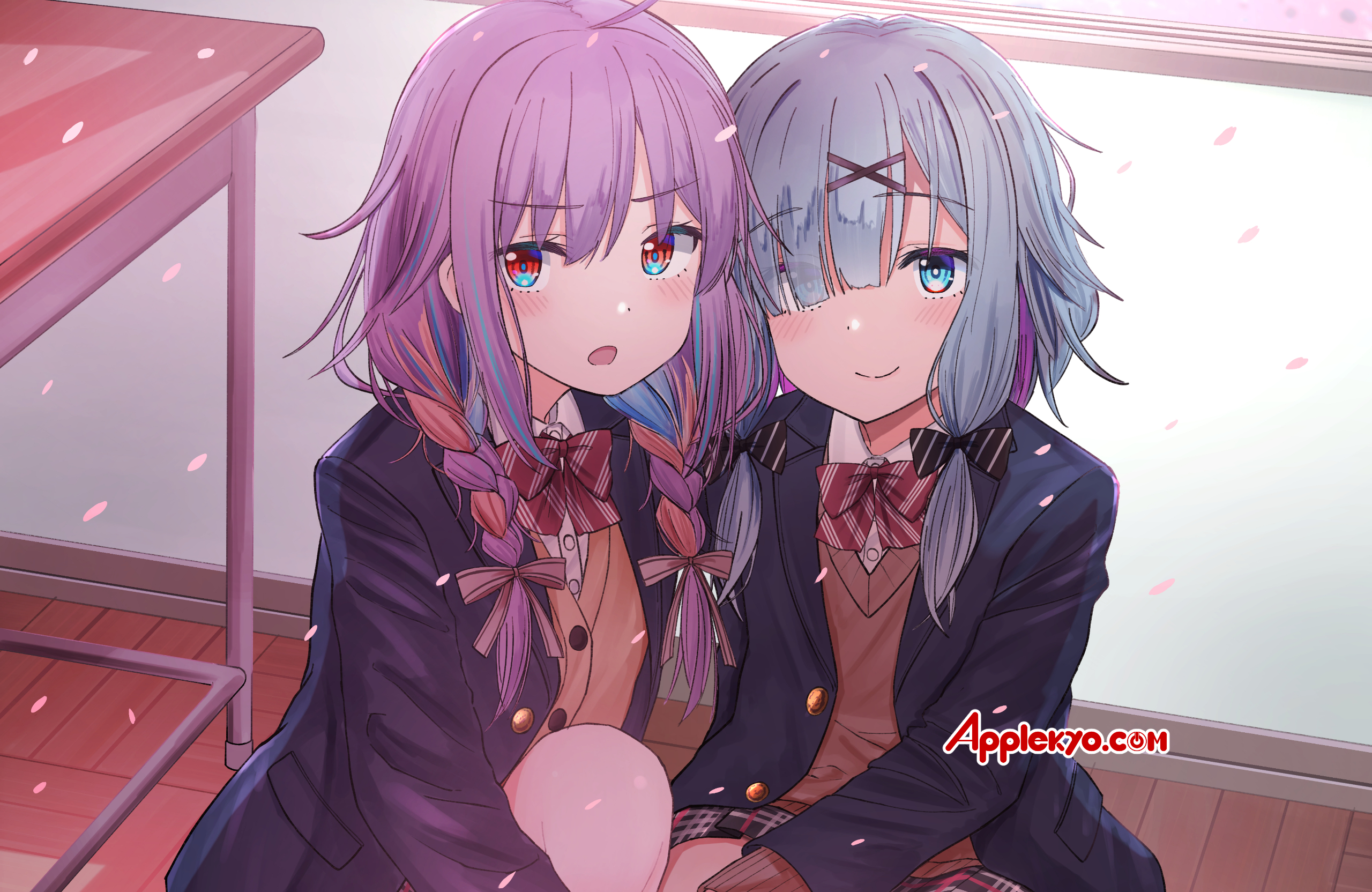 漆うしる先生今月の壁紙は制服姿の彩葉七色たんと幕乃涼(すず)たんだぞ‼️
